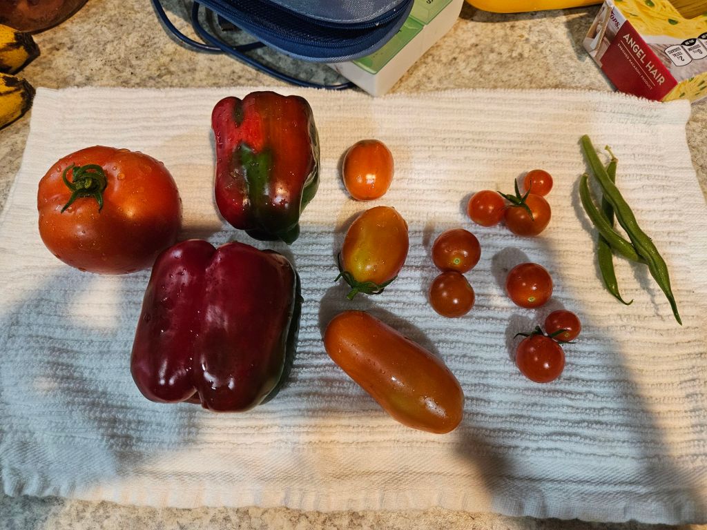 Today I spent the day with my mom. We went to lunch and enjoyed some girl time! It was so much fun, we haven’t done that in a while! After that, I tended my father’s garden since he is away at Boy Scout camp. I pulled out the scissors and gave the plants some trims! He also had 2 almost ripe tomatoes that I pulled and put in the window for him! 👩👧🍅