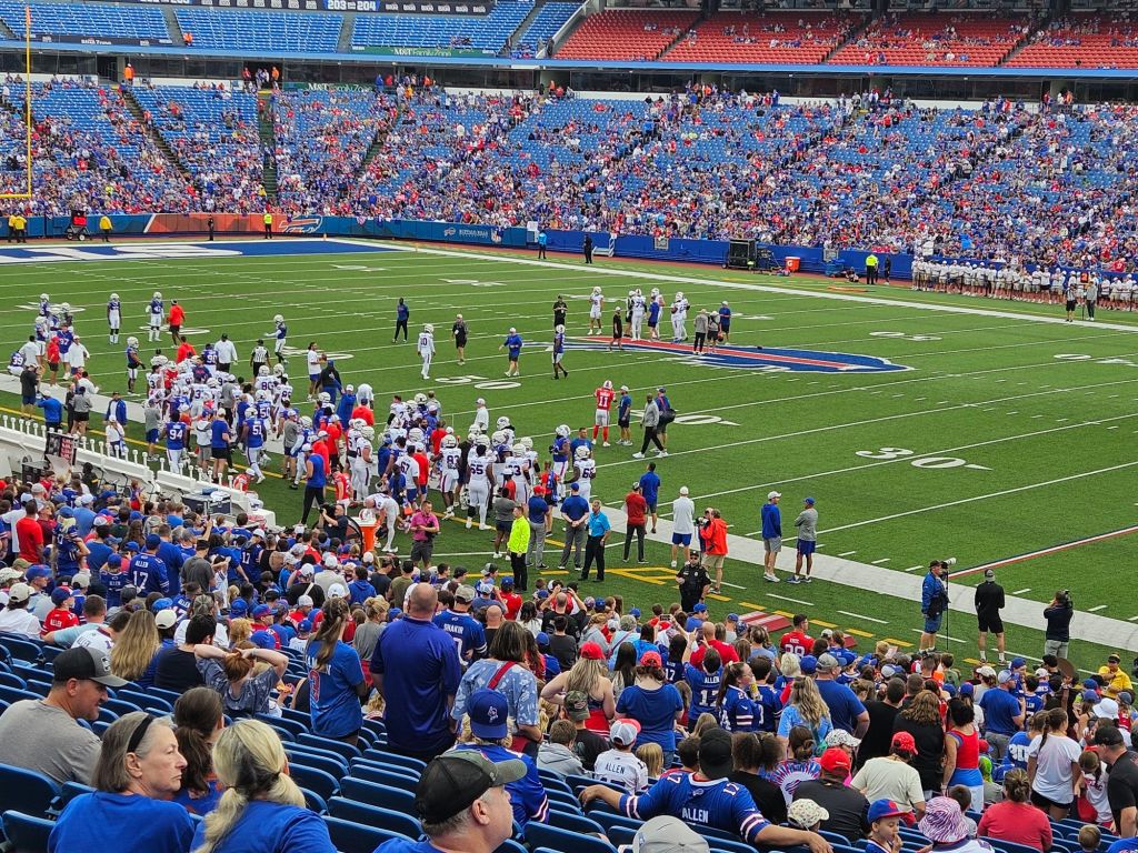 But the real highlight? Yesterday was nothing short of spectacular. 🌟 My dad and I attended the Return of the Blue and Red scrimmage for the Buffalo Bills at Highmark Stadium! 🏟️ Let me tell you, it was an experience we’ll both cherish forever. The energy in the stadium was electric, and seeing the Bills in action, even just for practice, was a dream come true for us die-hard fans. 🏈