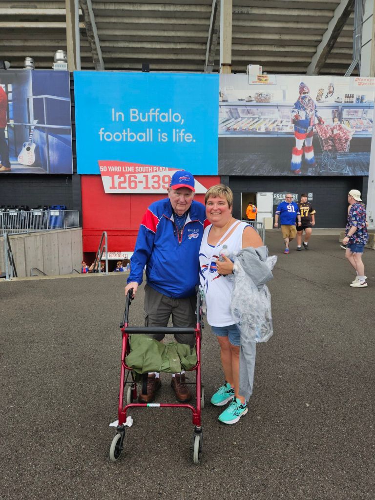 The best part of the day? The smile on my dad’s face. 😊 It’s moments like these that make all the difference. Sharing our mutual love for the Bills, celebrating together, and soaking in the atmosphere of Highmark Stadium from our fantastic seats—these are memories that will stay with us for a lifetime. ❤️ We may never get the chance to attend a regular game, but this scrimmage was a perfect substitute, allowing us to revel in the excitement and passion for our team. 🎉