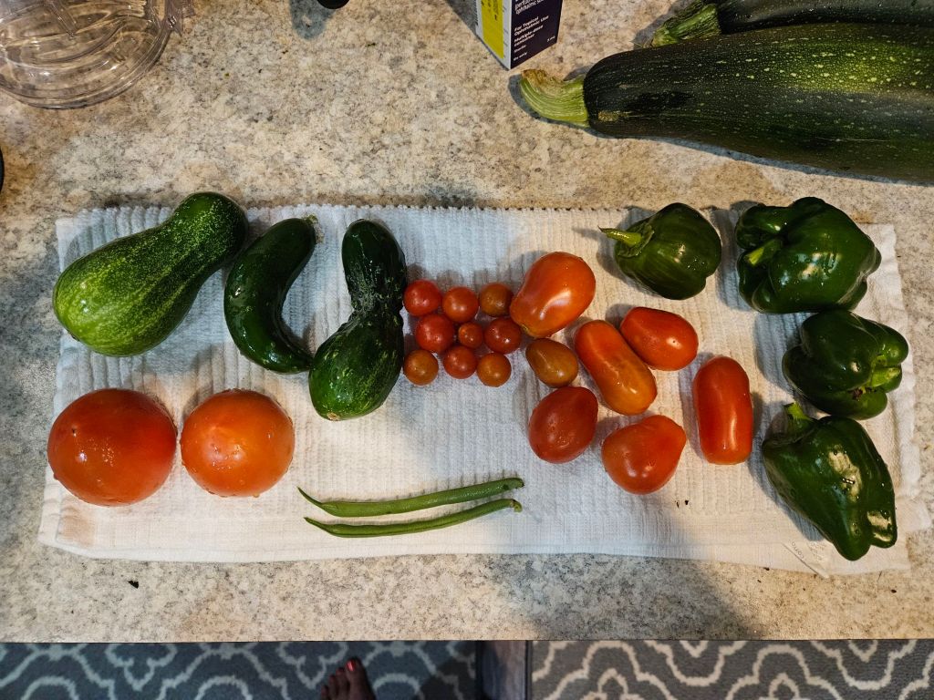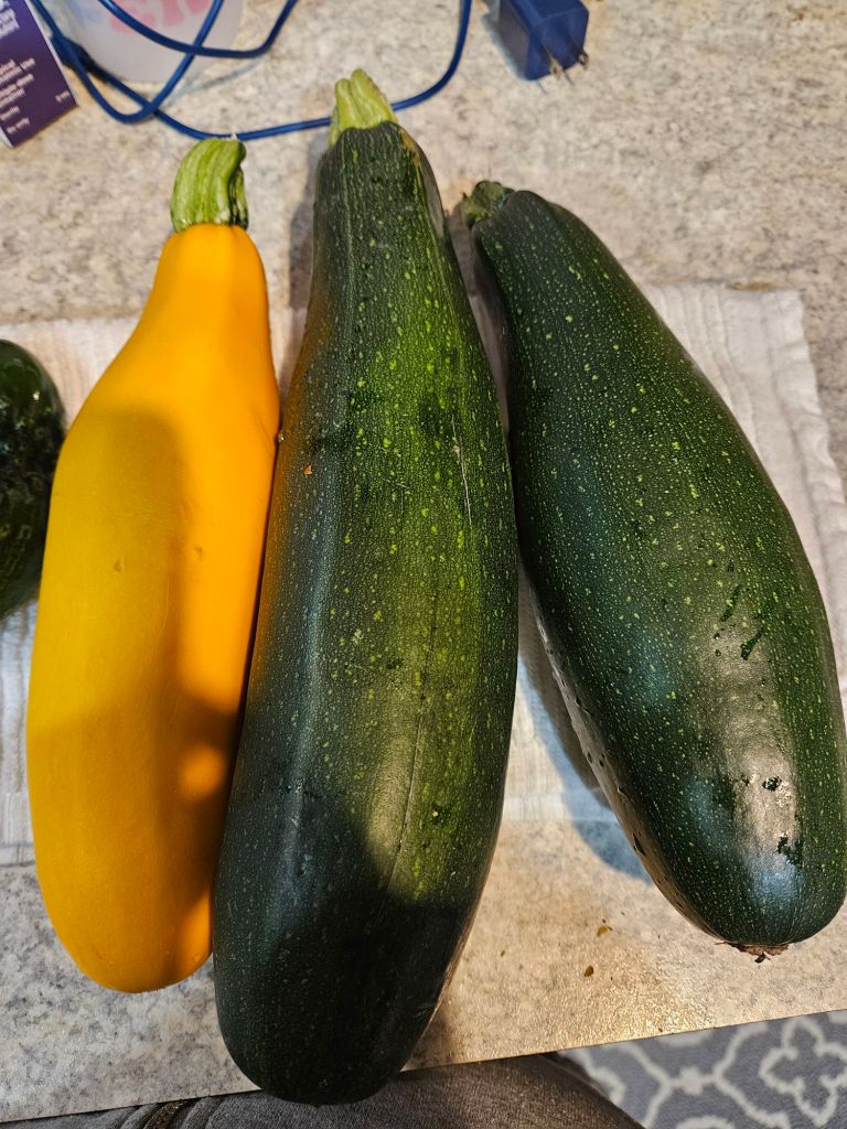 While I was out there, my amazing neighbor brought over two huge zucchini and a summer squash! 😍 I’m definitely going to prep those for freezing this week. I feel so lucky to have the best neighbors who always share their bounty. 🌟