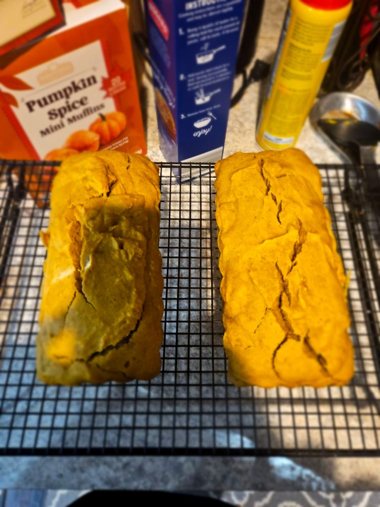 As the applesauce was processing, I moved on to baking. Pumpkin 🎃Spice bread was on the menu, both a sugar-free version and a regular one. In total, I ended up with three regular-sized loaves and five mini loaves. The heavenly smell of pumpkin and spices filled my home—it’s truly the scent of Fall!