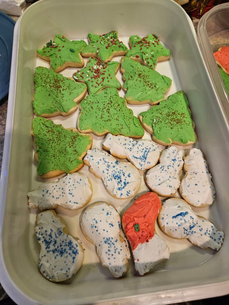 First up, I tackled the dishes I left drying from last night. Then it was time to get creative in the kitchen—frosting cookies! These cookies had been waiting since last weekend, and they turned out beautifully. After that, I cut and packaged my peanut butter fudge, which looked (and smelled) divine. Of course, with all that baking and frosting came a big cleanup session, so I took care of that before moving on to one of my favorite Sunday traditions: Crockpot Sunday!