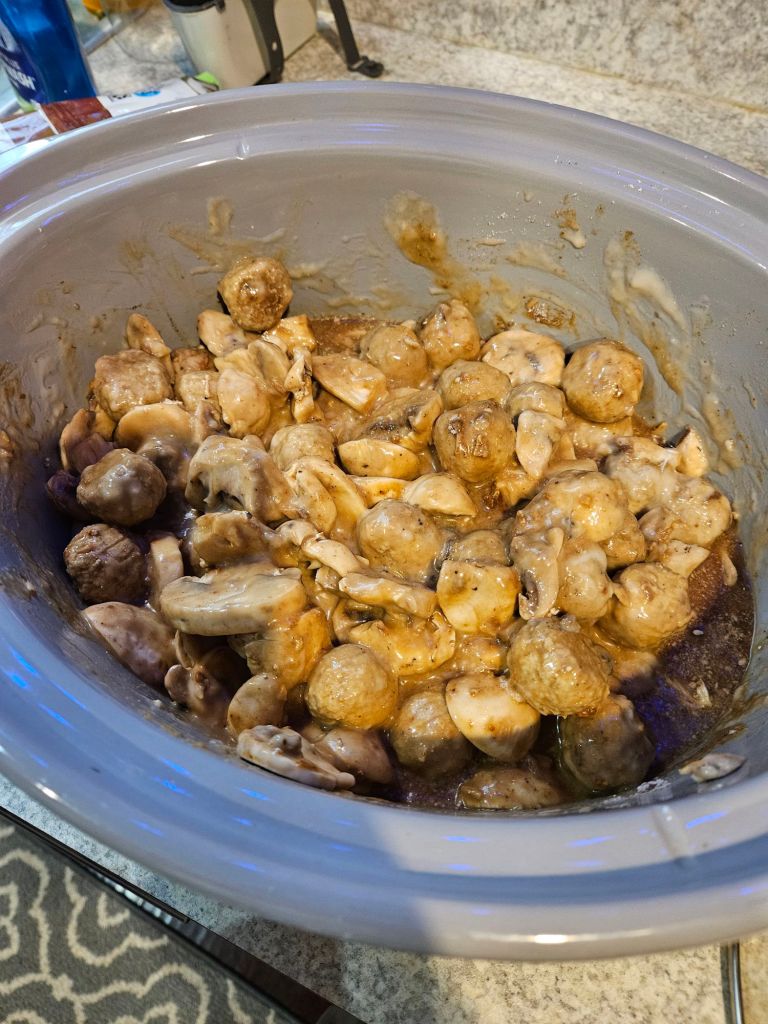 This week’s dish? Meatball Stroganoff served over creamy mashed potatoes. It was absolutely delicious—warm, hearty, and full of flavor. I’m already looking forward to enjoying the leftovers all week. (Scroll down for the recipe if you want to try it yourself!)