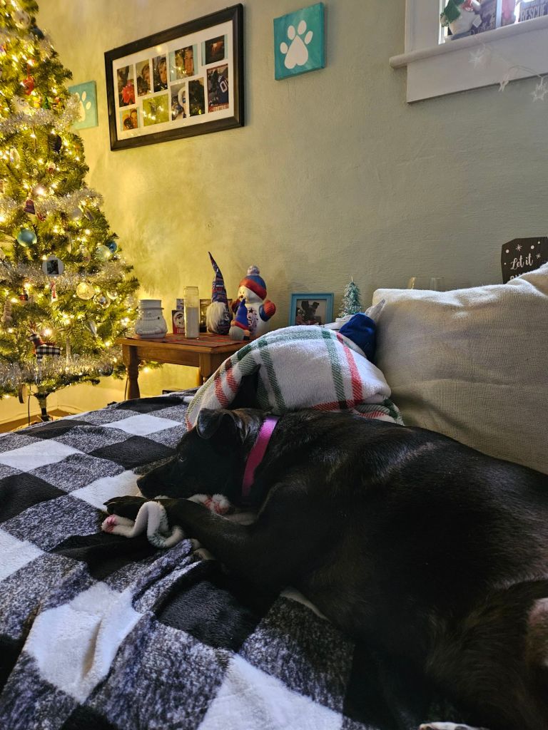 Once I got home, I settled in with my morning snack and enjoyed my book for a little while. But Bella had other plans—she decided it was time for a walk. Never mind that the temperature was frigid and the wind made it feel even worse! She insisted we go for five blocks. By the time we got back, I couldn’t feel my face. My eyes were watering so much they felt frozen! The rest of the afternoon was spent snuggling under blankets with Bella, trying to defrost.