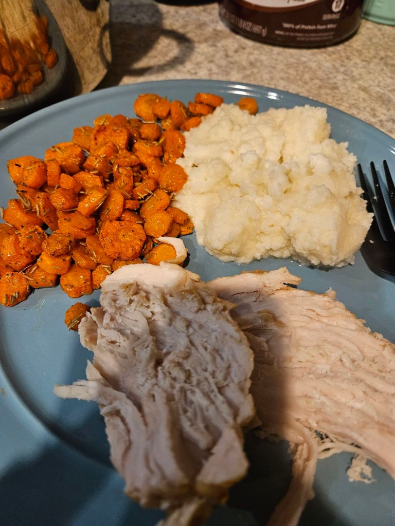 What a day full of culinary adventures! It’s been a few weeks since I last put my crockpot to work, so I decided to bring it back in style with a slow-roasted turkey breast. Let me tell you—it turned out so tender and flavorful! For sides, I whipped up some oven-roasted carrots with rosemary and a batch of creamy mashed cauliflower. Everything came together perfectly, and I might just have to put this meal on repeat!