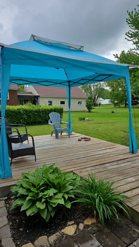 Then my brother came over to help with the annual gazebo setup 🛠️⛺—definitely not a one-person job. While I had him there, I recruited him to fix a piece of siding and help me move the grill onto the patio 🔧🔥. By the time all that was done, I was completely wiped out 🥱.