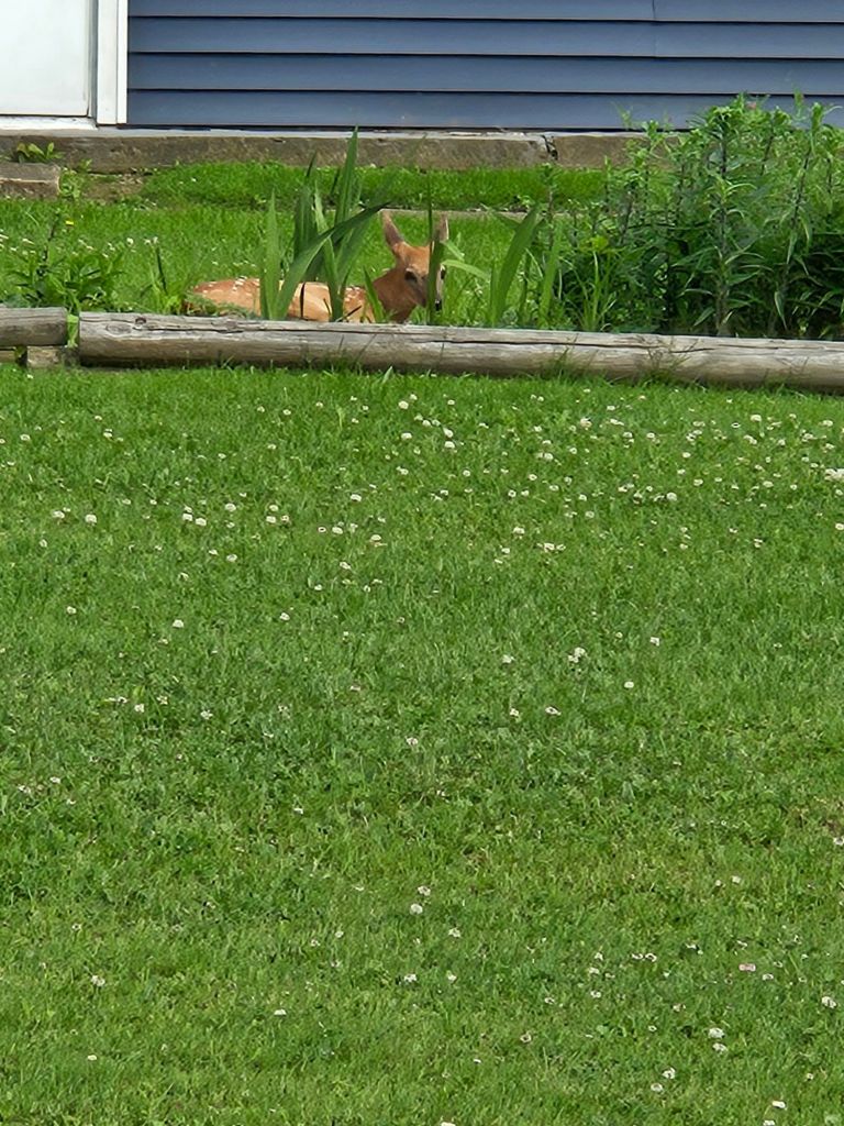 Tucked in the flower bed between our houses was a tiny fawn, curled up and resting. He wanted to make sure I didn’t accidentally disturb her—especially since I’d planned to grill dinner and usually take Bella out there with me. So grateful for the heads-up, because I definitely would’ve startled her (and Bella probably would’ve lost her mind 😬).