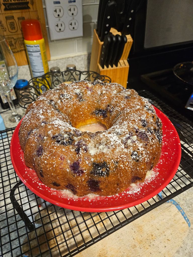After breakfast, I knew I had to beat the heat, so I got to baking before the kitchen turned into an oven itself. 🔥 Today’s creation? A Blueberry Sour Cream Bundt Cake made especially for my parents. 👩🍳💙 It smells amazing, but the taste test will have to wait until I deliver it tomorrow! 🤞