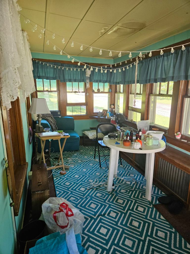 Today was a productive and fulfilling day, even if it was a bit warm and sticky outside! ☀️💦 I finally finished up my little “remodel” of the front porch—something I’ve been slowly working on and really excited about. The final piece of the puzzle arrived thanks to Amazon: a new bookshelf! 📦📚✨