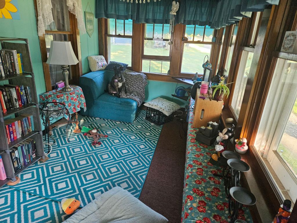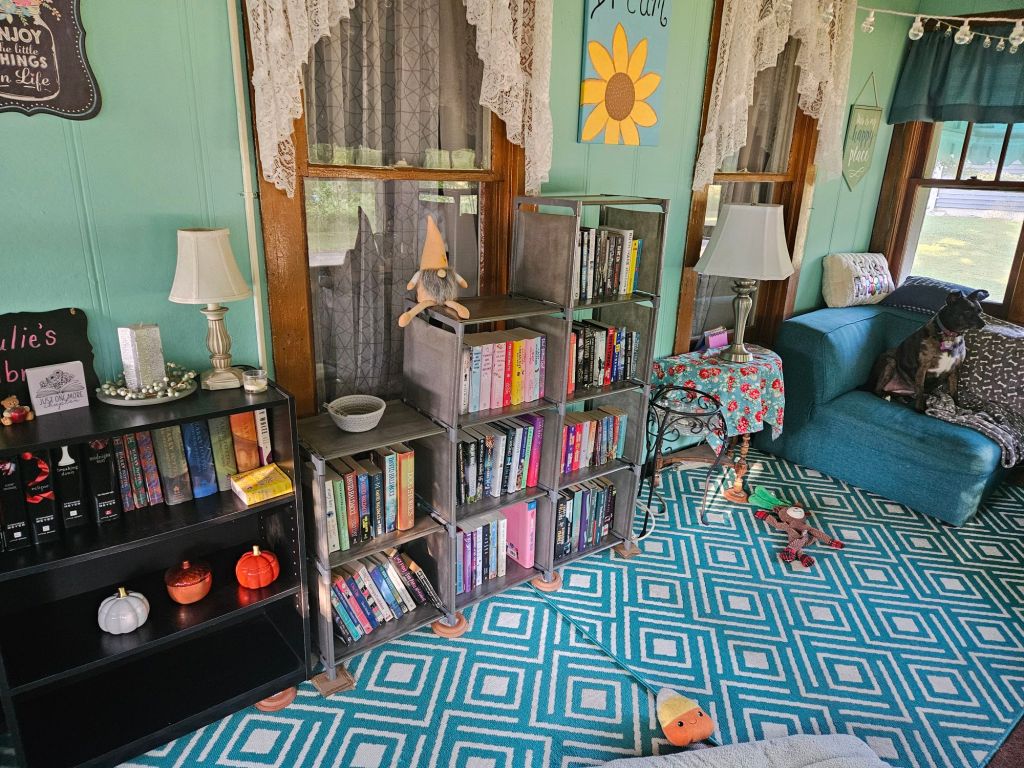 Once it was assembled (after a brief wrestle with those stupid directions 🔧😂), I was able to finish transforming the space into my very own little reading room/library. 📖🪑🌿 I love how cozy it’s turning out! There’s just one small issue… Bella has claimed the comfy chair in there as her own. 👑🐾 I even tried putting one of her beds in the room to lure her off it, but nope—Queen Bella has spoken! So now I’m officially on the hunt for another comfy chair—one I might actually get to sit in! 🛋️😉