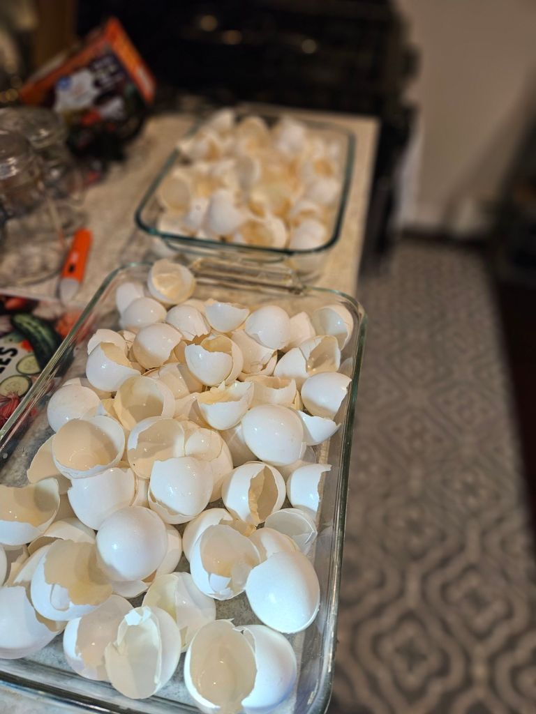 I also took a little time to whip up some eggshell fertilizer for the garden. I’ve been collecting shells for months—finally dried them in the oven for 30 minutes, let them cool, and crushed them into powder. Super simple, eco-friendly, and the garden LOVED today’s rain! 🌱💦 I’ll hold off on fertilizing until Sunday though—want to give the soil a little time to dry out before I add anything extra!