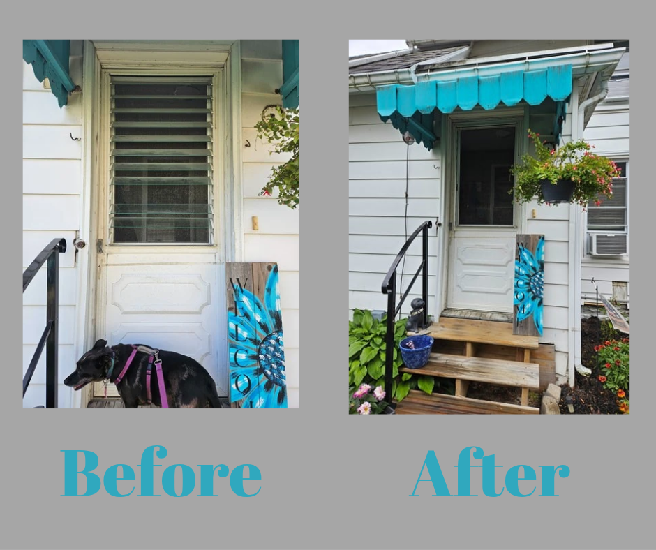 The only break in our cozy routine was when my brother stopped by to help with a long-overdue project—my storm door. Turns out, they don’t make in-swinging storm doors anymore, so replacing it wasn’t an option. But with some teamwork and a little DIY spirit, we cleaned it up and gave it new life! He was able to remove the broken glass pieces and the old track. There were missing brackets and random shards before, but now that they’re gone, it’s actually looking so much better! 🙌 Take a look!👇
