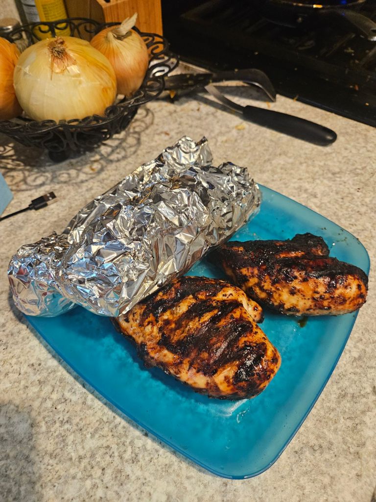 Oh yes I almost forgot to share what it decided on for my side with my grilled Greek chicken for tonight! I grilled corn on the cob! It was amazing! If you have never tried it I suggest trying it!
