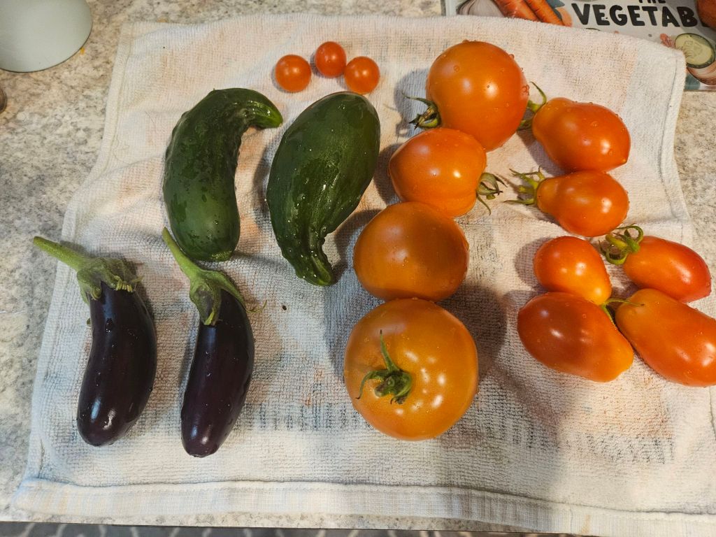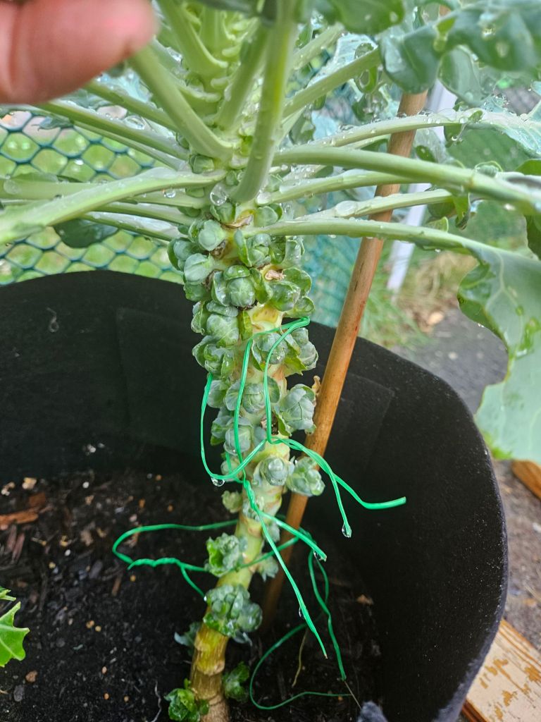 The garden was very productive tonight! 🌿 I had a pretty good harvest, and just look at those baby Brussels sprouts coming in! 🥬💚