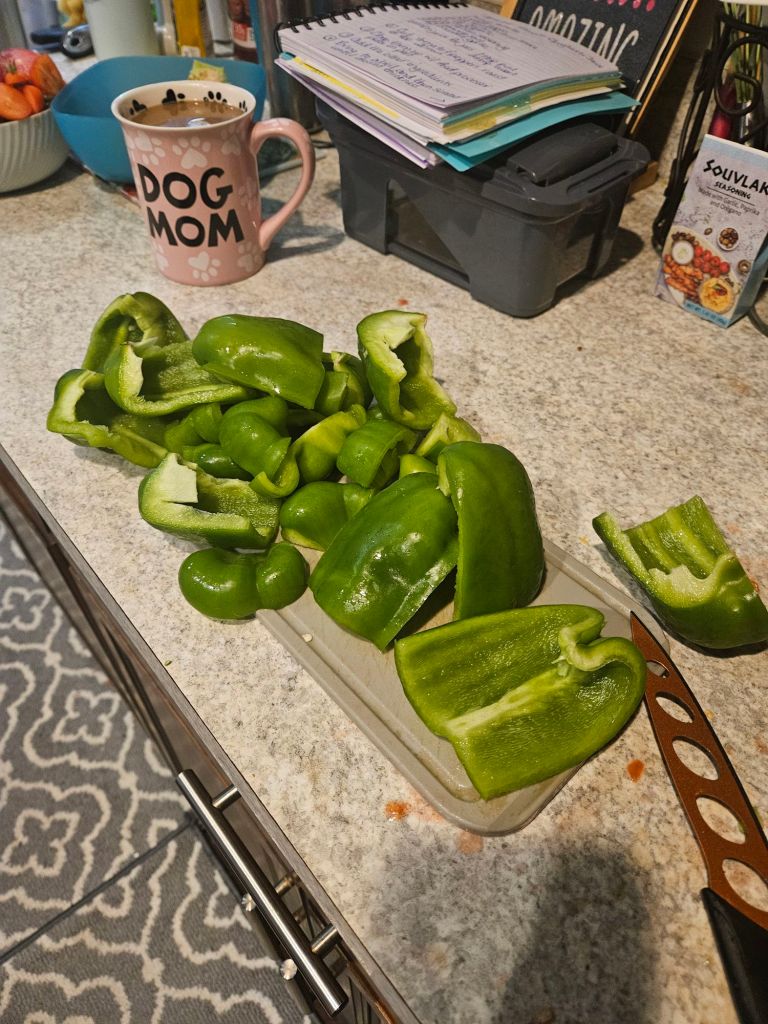 and peppers π« first. So, I got them all washed, chopped, and prepped π§βπ³, then worked in batches: two cookie sheets at a time πͺ, three rounds through the oven π₯. While swapping trays in and out, I chopped more veggies and cleaned as I went π§½π«§. (Future me was very grateful for that decision β no giant mess to tackle at the end!)