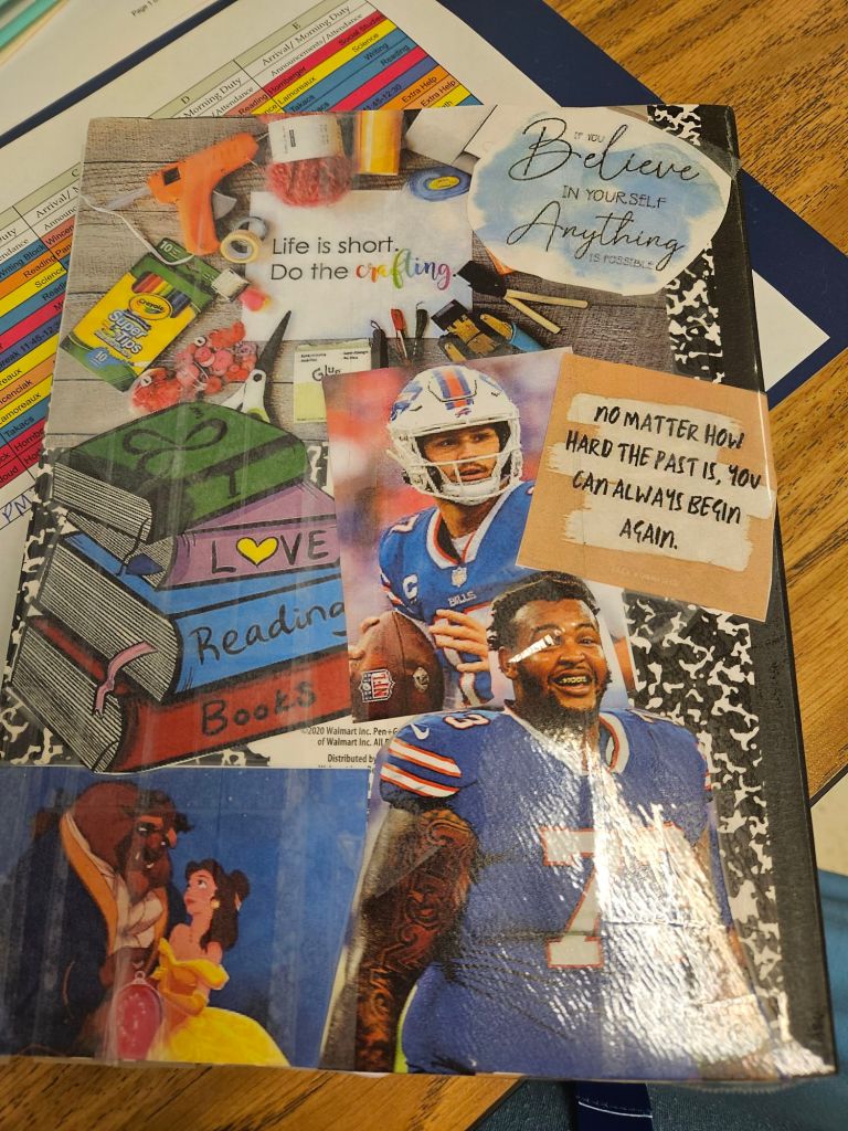 Alongside reading, I also started a writing journal π as an example for another assignment they had. The directions were to decorate it with all the things that make you happy πΈβ¨. Wellβ¦ letβs just say I ran out of room on my covers because there were so many things I wanted to include! ποΈππ