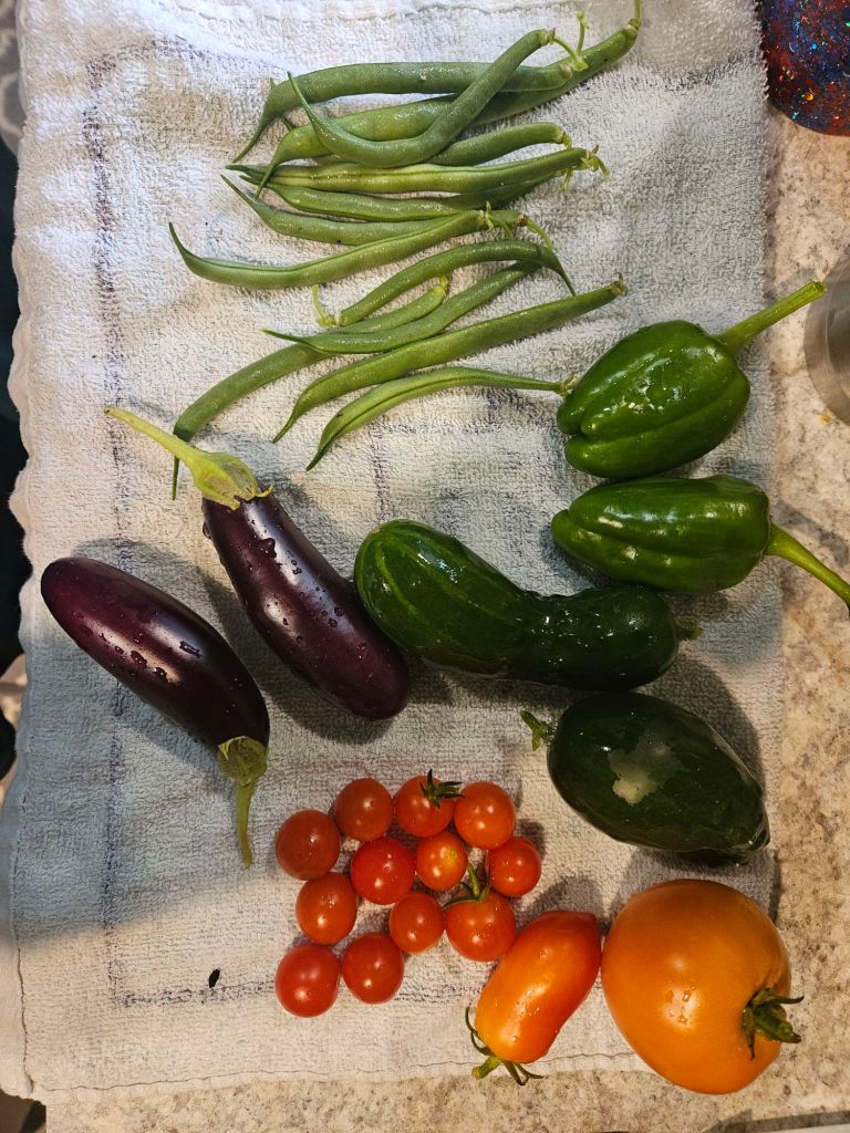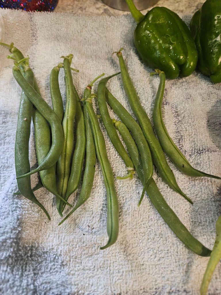 On a brighter note, I was finally able to harvest more green beans! 🫘 The seeds I planted later in the season are just starting to bloom 🌸 and produce, and tonight I was able to gather a pretty good-sized haul. 🥕🥒🍅 I also picked a few other goodies, making it probably my last big harvest of the year—well, except for the brussels sprouts, which are still taking their sweet time. 🥦 Pretty soon it will be time to finish cleaning up the garden and start prepping for next year. 🌱✨