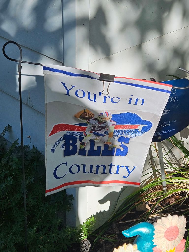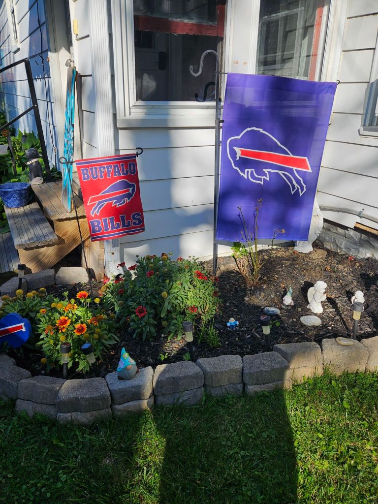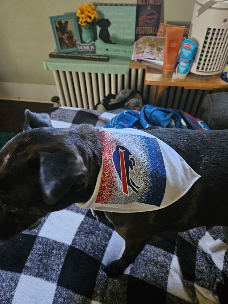 Now, Bella ๐พ and I are going to settle in and wait for the Buffalo Bills home opener! ๐๐โค๏ธ๐ค It feels like the longest wait ever, but kickoff is less than three hours away! Weโre readyโour garden flags and yard decorations are up ๐, Iโve got my jersey on ๐, and Bella has her special bandana I made for her (since her jersey is too small now ๐ถ). If anyone wants to buy her an XL doggie jersey, she would love it. ๐