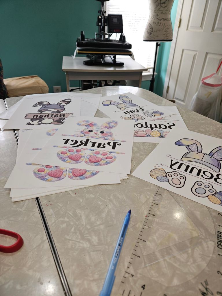 A big part of the day was spent in my craft space printing the designs for the customized Easter baskets I’m making this year. Yesterday was my big design day, creating all the different options, so today was about getting everything printed and ready for the next step. Next weekend will be heat press time when I finally get to press the designs onto the baskets. I always love seeing the designs come to life at that stage.