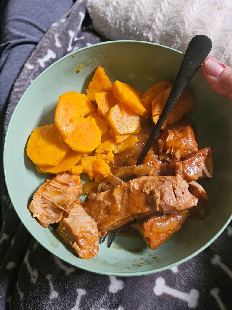 For Crockpot Sunday, I made BBQ spare ribs using sugar-free BBQ sauce, and they turned out absolutely delicious. 🍖🔥😋 Tender, flavorful, and very much “worth the wait” energy. I also boiled up some sweet potatoes on the side, which rounded everything out into a simple, comforting meal that felt like a warm hug on a plate. 🍠🥰